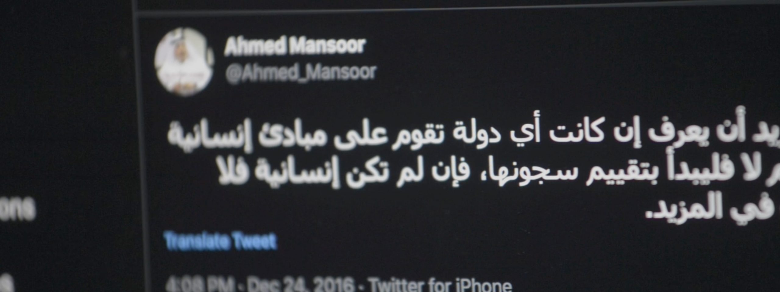 The Arab Spring. As telecommunication engineer and blogger, Ahmed Mansoor facilitates an online discussion forum together with other activists, later known as the UAE Five. After signing a petition in favour of an elected parliament, he becomes target of an state-sponsored online smear campaign, followed by his arrest. Mansoor is convicted for ‘insults to the nation’s leadership’. International pressure leads to his release, but he loses his passport and right to employment.